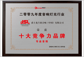 2009年度音響燈光行業十大競爭力品牌2010年度音響燈光行業十大競爭力品牌