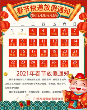 2021年春節放假通知【萬昌音響】