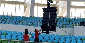 體育場館專業(yè)音響工程對音響系統(tǒng)要求很高,要求系統(tǒng)必需做到全場聲音分布均勻合理,要做吸聲處理,做到無回聲、顫動回聲等;要求音響擴(kuò)聲全頻混響均衡,無頻點(diǎn)落差,無聲聚焦問題,無聲駐波現(xiàn)象等。