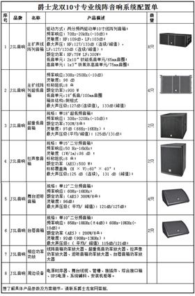 爵士龍雙10寸專業(yè)線陣音響系統(tǒng)配置單