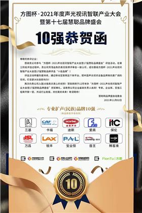 【喜訊】恭喜JSL爵士龍入選方圖杯·2021聲光視訊行業(yè)品牌評選專業(yè)擴(kuò)聲10強(qiáng)!