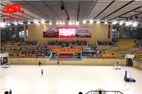 場中央做一個供聲區(qū),用3組音箱覆蓋,吊掛在北看臺挑棚網(wǎng)架上,有聲像控制的作用。對南北看臺觀眾區(qū),各用5組音箱,吊掛在南北看臺挑棚網(wǎng)架上,分別覆蓋南北看臺觀眾區(qū)。對東西看臺觀眾區(qū),各用2組音箱,一組吊掛在北看臺挑棚網(wǎng)架邊沿上。各觀眾區(qū)半墻、柱面墻、障礙物等背面聲音覆蓋不到的地方,均可用分散的,較小的音箱獨(dú)立覆蓋,進(jìn)行補(bǔ)聲。