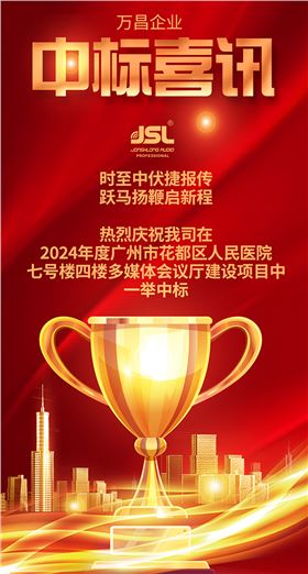 首頁爵士龍快訊 中標喜訊:慶祝我司在2024年度廣州市花都區人民醫院七號樓四樓多媒體會議廳建設項目中一舉中標