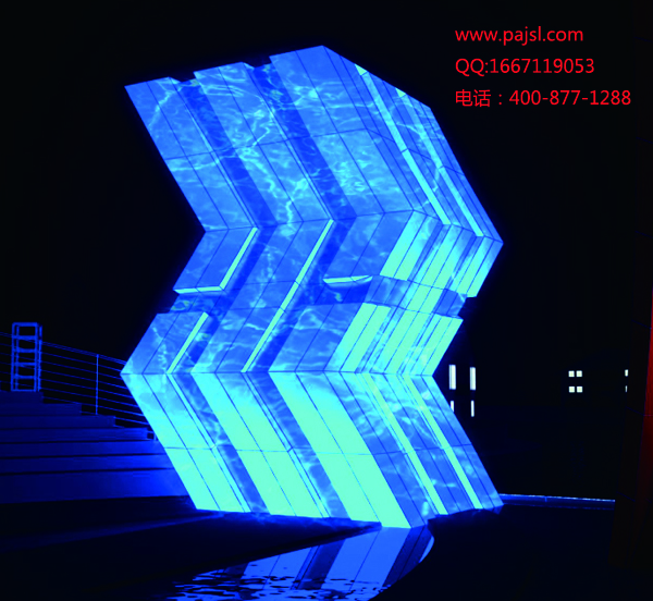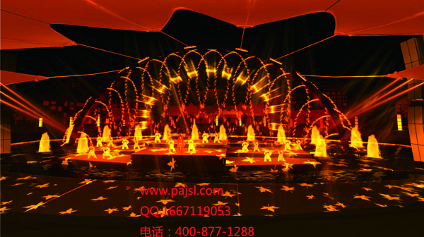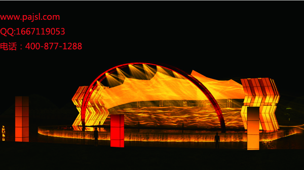 觀眾席兩邊的“水字建筑”為功能/設備房,其獨具創意的篆書水字形外觀,夜晚輔以燈光渲染,整體呈水波紋圖案,無論白天夜晚都是一大景觀亮點.二樓以上空間主要用于安放總控系統、電氣設備、燈光設備和其他演出設備,可預防洪水、潮氣對設備可能造成的損壞。