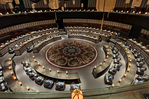 大明宮宴坐落于西安,是一個圓形演繹餐吧,總面積為2058.3平方米。