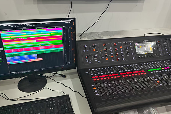 本項目初期先通過建模軟件進行空間建模與聲學模擬,反復驗證所用音箱的吊掛角度、聲壓覆蓋等參數,確保紙面方案和現場體驗之間的偏差最小。最終,落地方案采用了三樓觀眾區環繞,四樓觀眾區環繞,頂部環繞,超低音和返送組成的全沉浸布局,即三樓觀眾區12個水平環繞聲道,四樓觀眾區12個水平環繞,頂部6個水平環繞聲道和1個低頻聲道,遠遠高于傳統5.1或7.1影院系統,也高于目前沉浸聲中常見9.1.6布局。對于沉浸式演繹而言,這種級別的系統搭建堪稱前所未有。本項目布局是真正360度環繞,頂部和四周都布置了音箱,既增強了聽感,也沒有出現延遲問題。在設計布局時,我們會考慮場地承接的演出內容對頻響和聲壓級都有較高要求,系統也必須支撐得住。此次頂部環繞PA采用了6只C212全頻音箱掛于頂部,三樓和四樓觀眾席環繞采一共采用了24只CX804線性音柱,全部隱藏安裝,此音柱為三分頻類型,并且采用獨家開模的單元架構,非常適合高端場所使用。超低音采用6只單21寸單元隱藏于選裝舞臺下方。除了音箱以外,作為沉浸式閉環系統在處理器、功放等方面裝備齊全,更配合前端的各種DAW工作站,讓客戶自由調配、定制沉浸式的演繹現場。